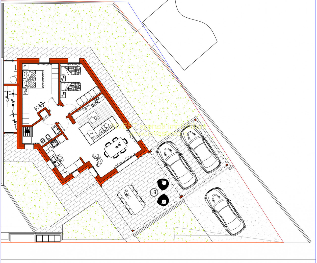 • Giardino su tre lati con accessi carraio e pedonale